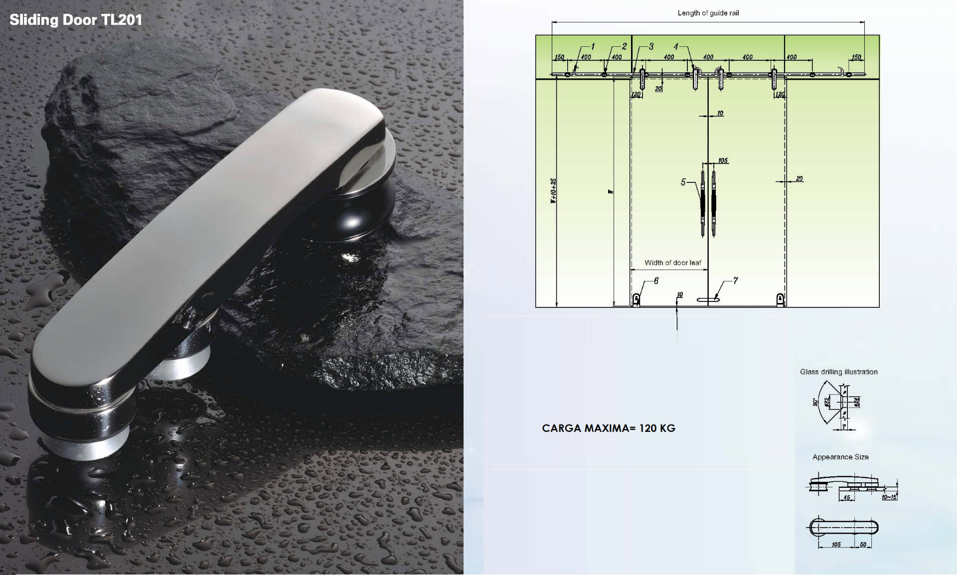 SUJETADOR VIDRIO FIJO - RIEL 2