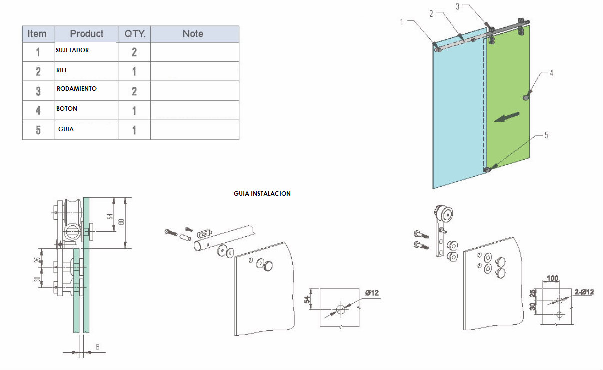 SUJETADOR VIDRIO FIJO - RIEL 2