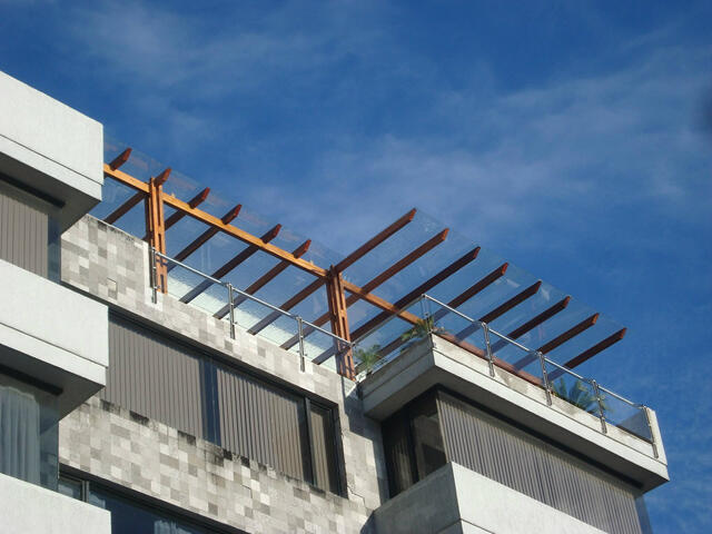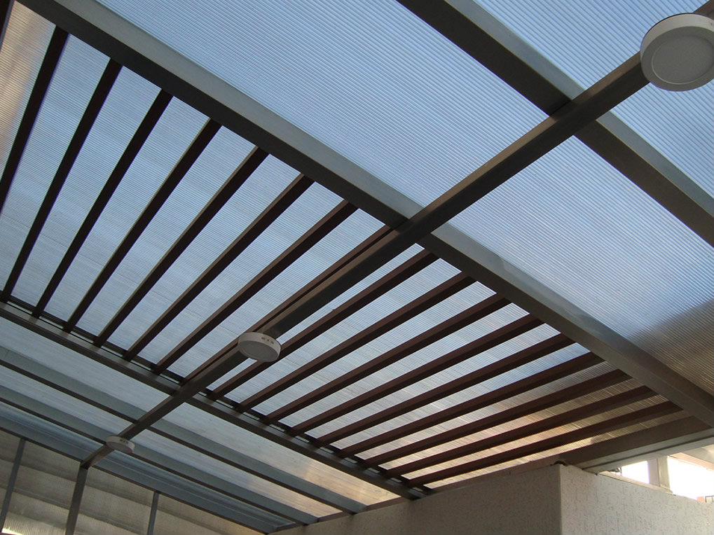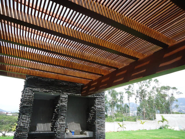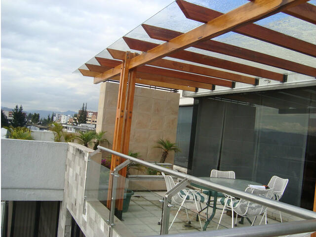 Pérgolas fabricadas en acero inoxidable A304, madera y hierro estructural A37, con elementos tratados superficialmente para que  resistan al sol y la lluvia. En el hogar las pérgolas forman parte importante en la estética llevando a ser uno de los espacios más concurridos para el descanso y a la vez complementado generalmente con chimeneas y áreas de parrilla BBQ. La pérgola techo o cubierta puede ser cubierta con policarbonato, vidrio templado y vidrio laminado.