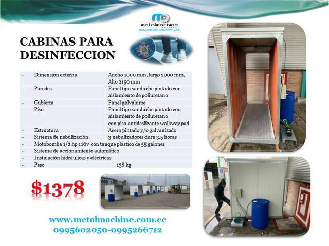 Para evitar la propagación del Covid-19 y cuidar la salud de los habitantes de Quito, se requieren estrictas medidas de seguridad e higiene. Con estas cabinas se pretende prevenir y frena más contagios generados por el actual coronavirus que nos mantiene en cuarentena, es hora de tomar mayor acción y luchar contra nuestro enemigo invisible. Fabricación de cabinas de alto y bajo tráfico, ideales para supermercados, centros de distribución, bancos y demás lugares donde el aglomera miento es inevitable.